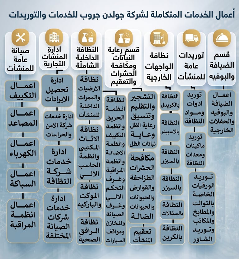 شركة جولدن جروب للخدمات والتوريدات - شريكك الاستراتيجي في إدارة المرافق والخدمات المتكاملة منذ 2011.
